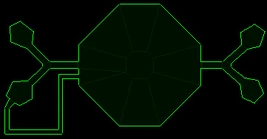 Arena consists of one central area and four smaller attached rooms in which players spawn. Each attached room is separated from the central arena with a hallway and door.